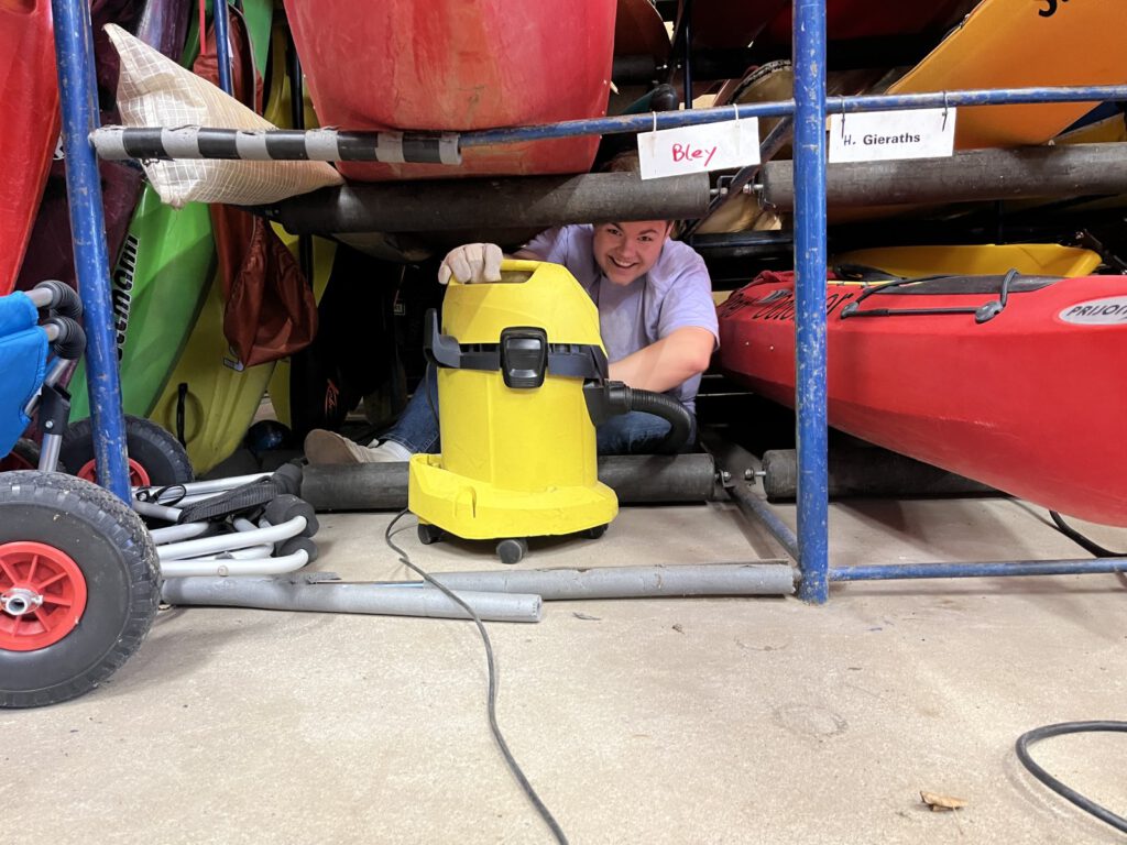 Im Bootshaus wurden Fenster & co. ausführlich gereinigt sowie kleine Elektroarbeiten erledigt. Die Bootshalle wurde nahezu einmal komplett leergeräumt, um nach einer Grundreinigung ordentlich aufzuräumen bzw. auszumisten.